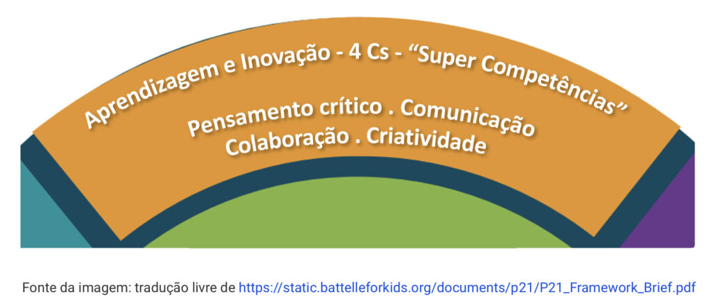 A Parceria para as Competências do século XXI, que originou o Quadro das Competências do Século XXI (Partnership for 21st-century Skills, 2010), sublinhou a importância das competências essenciais para o sucesso na aprendizagem, ensino, avaliação, trabalho e vida na atual economia digital (Kivunja, 2015). Assim, os especialistas concordaram que a lista que já se referia ao pensamento crítico, à comunicação, colaboração e criatividade, merecia ser designada por “4Cs – ‘super competências’ para o século XXI”.